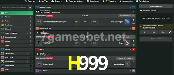 A aposta H999 oferece aos jogadores a experiência mais conveniente de apostas em eSports!